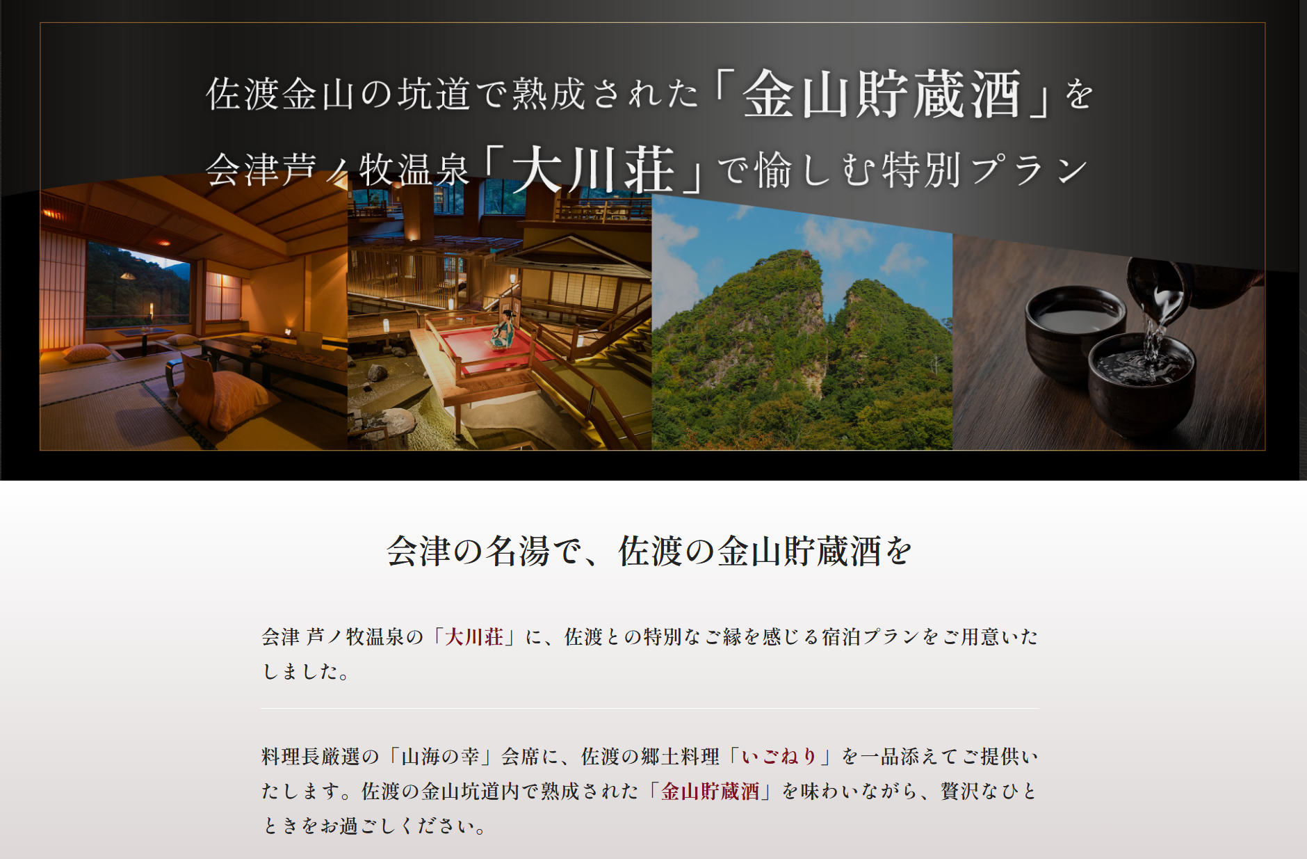 会津 芦ノ牧温泉の「大川荘」に、佐渡との特別なご縁を感じる宿泊プランをご用意いたしました。