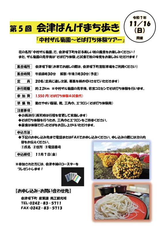 会津ばんげまち歩き2025 中村ザル菊園~そば打ち体験ツアー