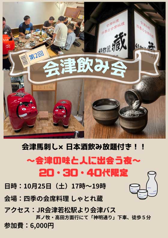 先月、東京で満員御礼となった「会津飲み会」が、ついに現地・会津で開催されます!!「会津が好き」「地域創生に関わりたい」そんな想いを持つ方が集まる温かい交流イベントです!