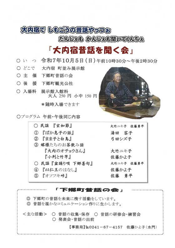 昔ながらの雰囲気を味わいながら、語り部たちによる昔話をぜひお楽しみください。