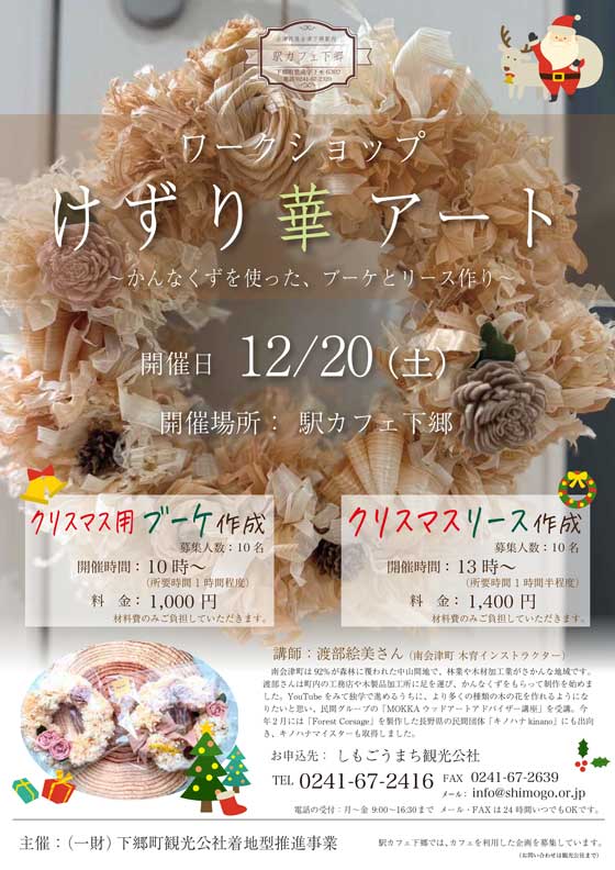 けずり華アート かんなくずを使った、ブーケとリース作りです。クリスマスに向けて、世界で一つだけのブーケ、リースを作ってみませんか?