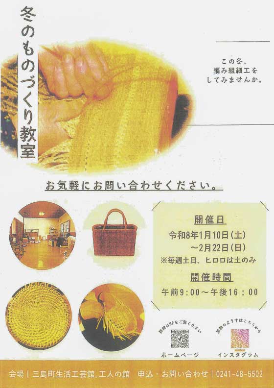 恒例の編み組細工教室を開催します。