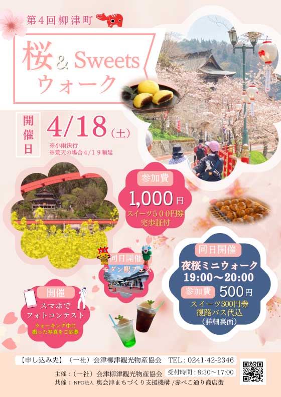 町全体が桜色に染まる季節、只見川沿いの景色や圓藏寺、門前町のスイーツを味わいながら、約4.5kmのコースを歩くイベントです。初級〜中級者向けのコースで、どなたでも気軽にご参加いただけます。 先着 200 名 (事前に専用フォームからお申し込みください。) ※定員に達し次第、締め切りとなります。 |