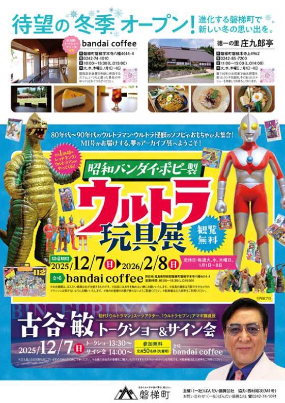 1980年代~90年代にかけて愛されたウルトラマンシリーズの玩具やソフビ人形が大集合。懐かしさと迫力を間近で感じられる特別展示です。入場は無料、どなたでもお気軽にお楽しみいただけます。